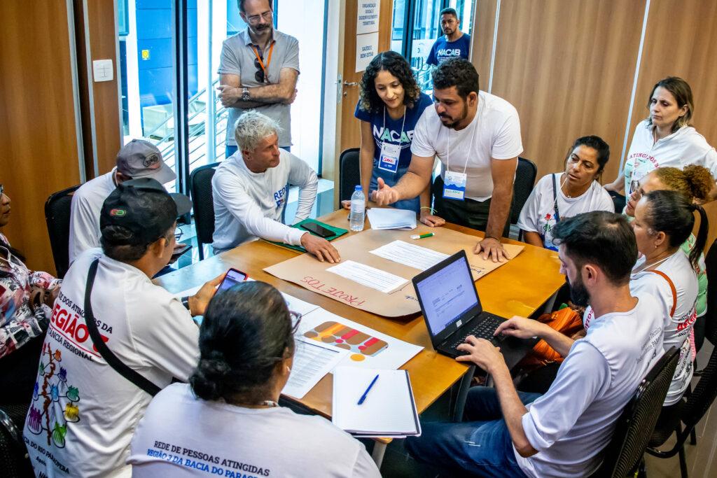 Os projetos foram organizados em cinco blocos temáticos – Educação, Cultura e Formação; Gestão da Água e Recursos Naturais; Infraestrutura; Organização Social e Desenvolvimento Territorial + Saúde e Bem-estar; e Agropecuária, Agroecologia e Beneficiamento. Os grupos de pessoas atingidas circulavam entre os blocos avaliando os projetos, sugerindo exclusões e novas ideias