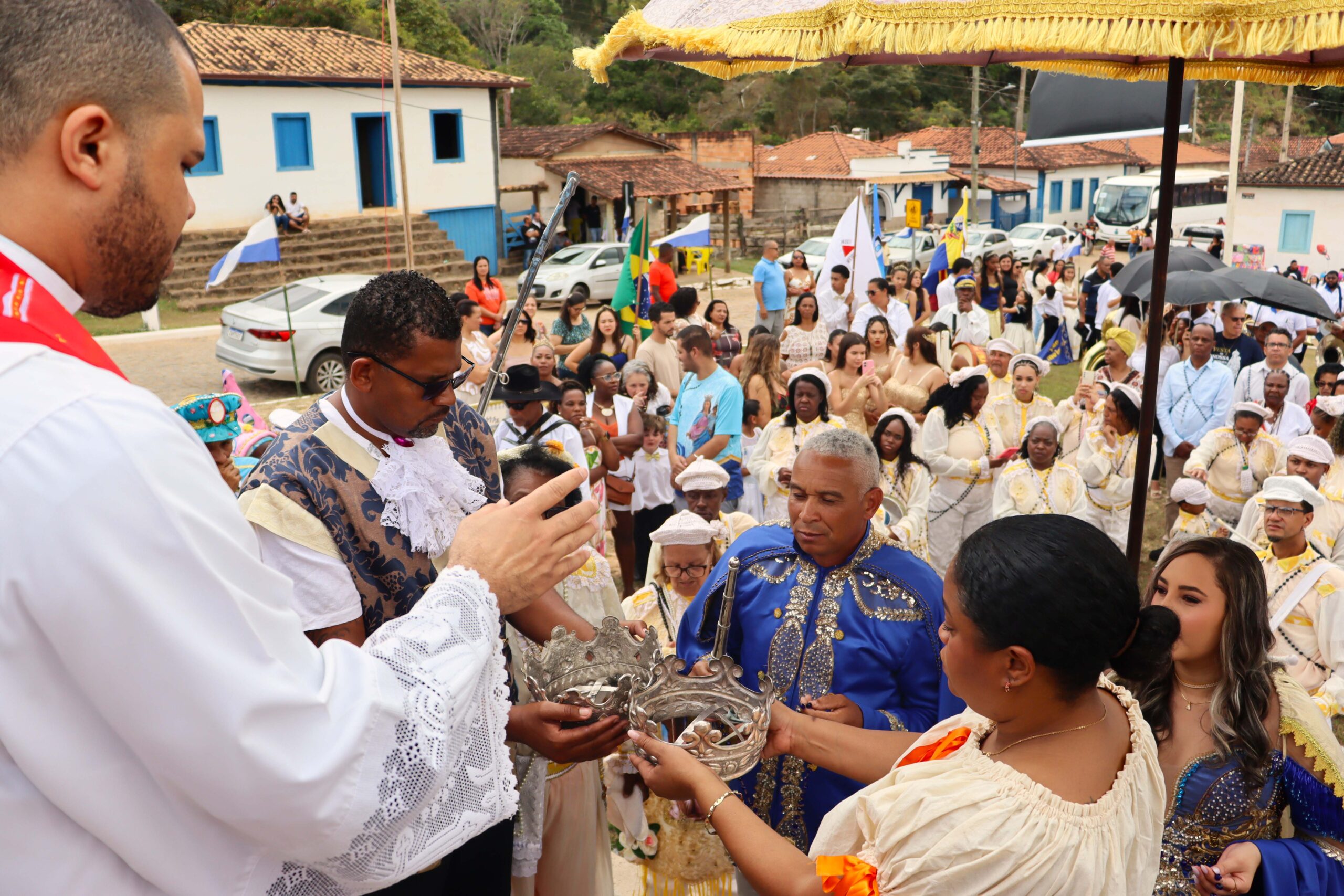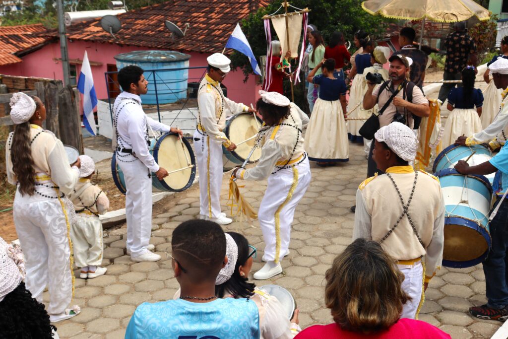 No domingo, dia 14, o cortejo foi o grande destaque. A tradição ganhou cores e sons especiais e a comunidade saiu pelas ruas para buscar a rainha em sua casa e levá-la até a igreja. Esse gesto é sinal de respeito: o povo vai ao encontro de sua representante, valorizando sua história e seu papel na festa.
