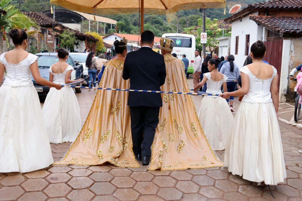O último fim de semana foi marcado por missas, cortejos, procissões, levantamento da bandeira, queima de fogos, apresentações artísticas e musicais. No sábado, após a novena e Santa Missa, houve o hasteamento do mastro e queima de fogos; no domingo, a tradicional procissão percorreu as ruas do vilarejo ao som do Congado de Itapanhoacanga, da Marujada de Conceição do Mato Dentro, da Marujada e Caboclada de Sabinópolis, além da banda de música Nossa Senhora Aparecida de Córregos. No último dia, segunda-feira (14), foi realizada a missa de encerramento e o rito de passagem da coroa aos novos reis. O momento é de grande simbolismo, que marca a transição dos festeiros e o desejo da comunidade em garantir a continuidade da celebração.
