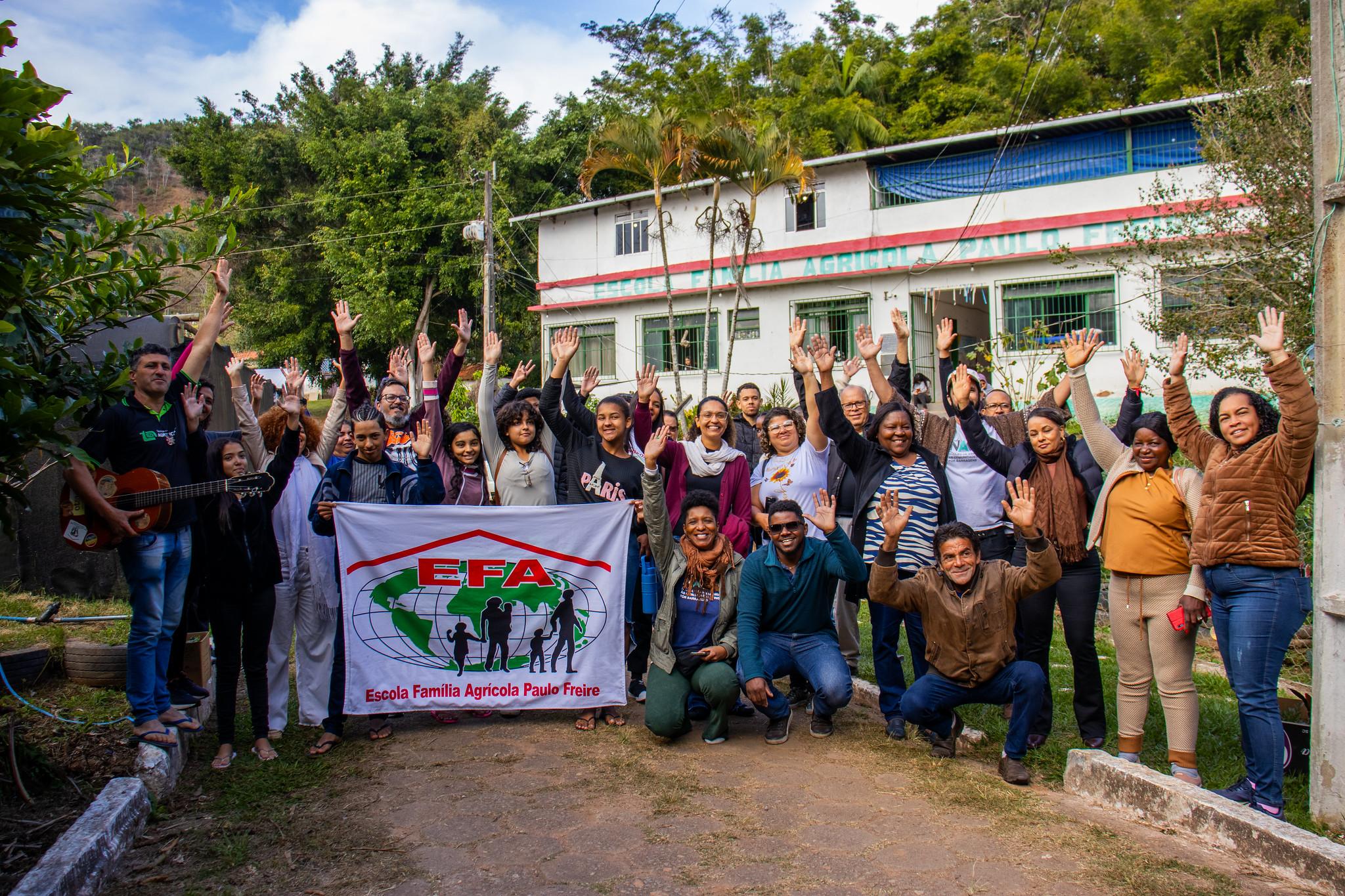 A primeira parada foi na Escola Família Agrícola (EFA) Paulo Freire, em Acaiaca, onde os visitantes aprenderam sobre as origens da iniciativa e seu método de ensino, alinhada à pedagogia de alternância, em que os alunos ficam 15 dias na escola e 15 dias em casa. O intercâmbio, realizado nos dias 10 e 11/07, também contou com uma visita guiada pelos alunos e alunas nas áreas de cultivo, compostagem, criação de porcos e galinhas e experimentos agroecológicos, que também fazem parte dos estudos.
