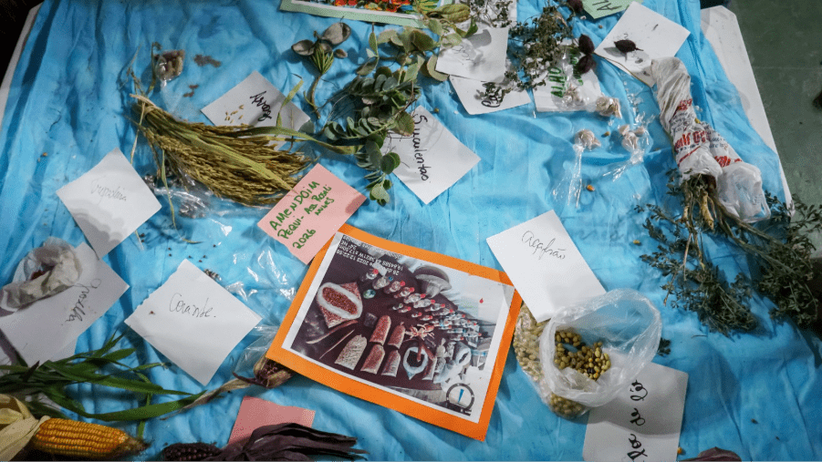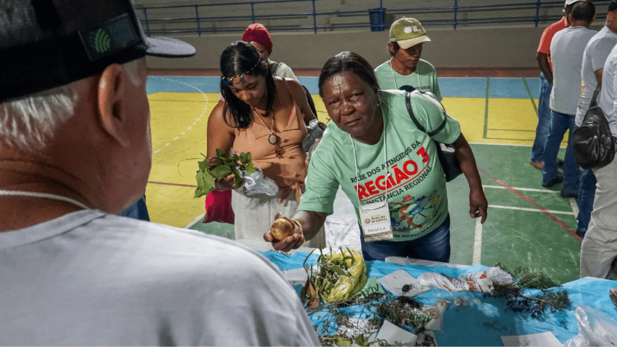No período da tarde, o momento coletivo foi encerrado com uma intervenção de Pai Tozinho, da Aldeia das Folhas Pai Julião das Almas. Em seguida, os participantes realizaram a troca de sementes, fortalecendo a prática tradicional e os vínculos entre os territórios. A noite contou ainda com uma feirinha cultural e apresentação musical do cantor Rubinho do Vale.